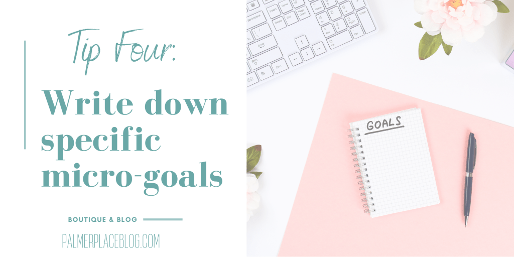 It is not enough to say I want to grow my business by 50% this year. Well great, but what are the strategies behind that growth? I find writing down small goals keeps me focused on a bigger scale.