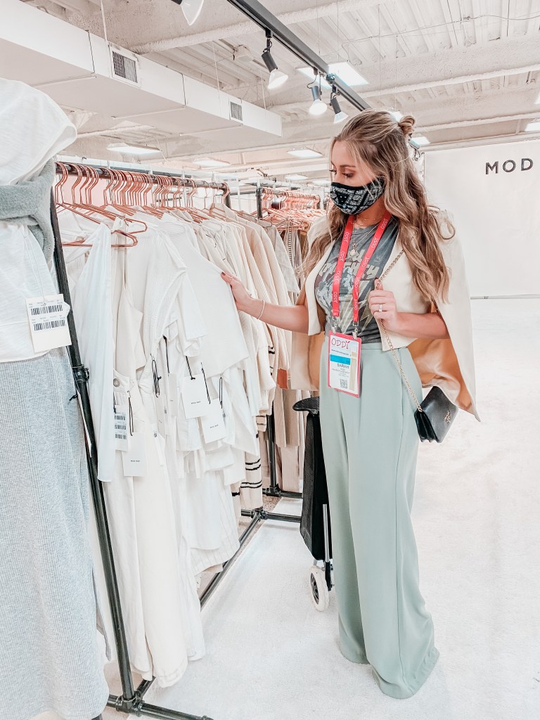 After checking in, you will navigate the random hallways and escalators and then you will arrive on the floor with hundreds of vendors. Each vendor has there own little “store” set up. You can definitely pick up on the vibes of each vendor just by the manikins and color schemes. I found myself gravitating to neutral color palettes with pops of subtle prints and colors scattered throughout.