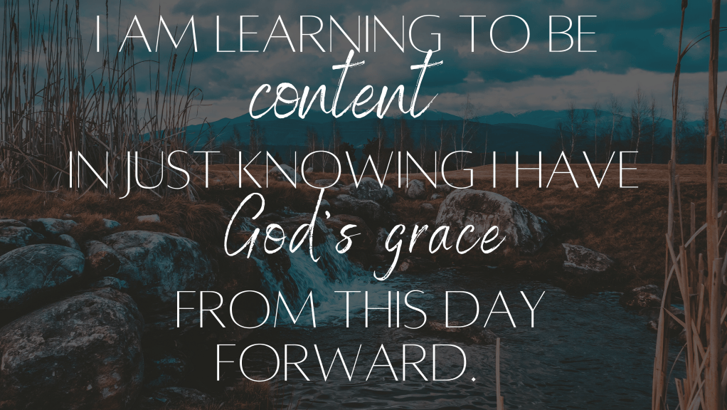 Truth is, I know I will struggle with contentment because I always have. It is easier for me to want the next challenge or pursue more. I believe in the moments when we are searching for more, God has a funny way of taking away all of those things so you can realize your need for him. I have lived this. I have pursued my “happiness” of worldly things and in the end had nothing left but dust from the storm I had created. Through these trials, I am learning to be content in just knowing I have God’s grace from this day forward.